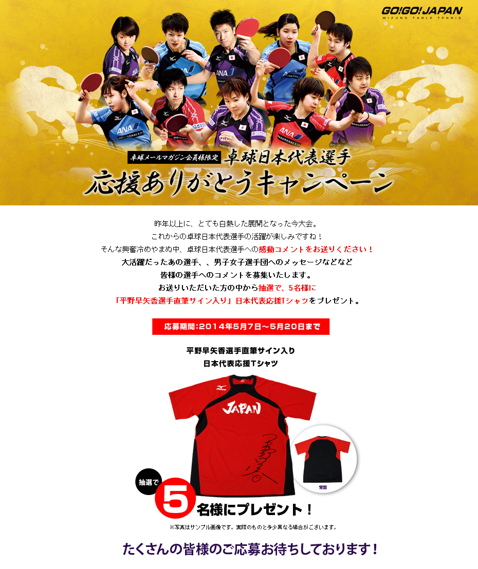 【卓球】日本代表応援ありがとうキャンペーン