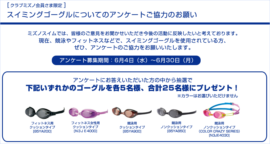※このプレゼントに関する個人情報取扱いのお問い合わせはミズノ株式会社コンペティション事業部 までメール(swim@mizuno.co.jp)にてお願い致します。