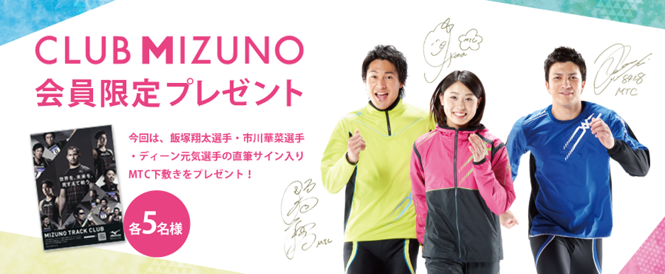 ※このプレゼントに関する個人情報取扱いのお問い合わせはミズノ株式会社コンペティション事業部 までメール(mizunotrackclub@webmail.mizuno.co.jp)にてお願い致します。