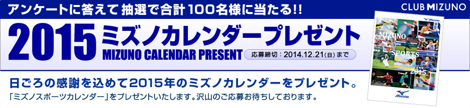 2015年 ミズノカレンダープレゼント 応募締切:2014年12月21日(日)