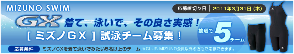 ■応募条件 :ミズノGXを着て泳いでみたい5名以上のチーム