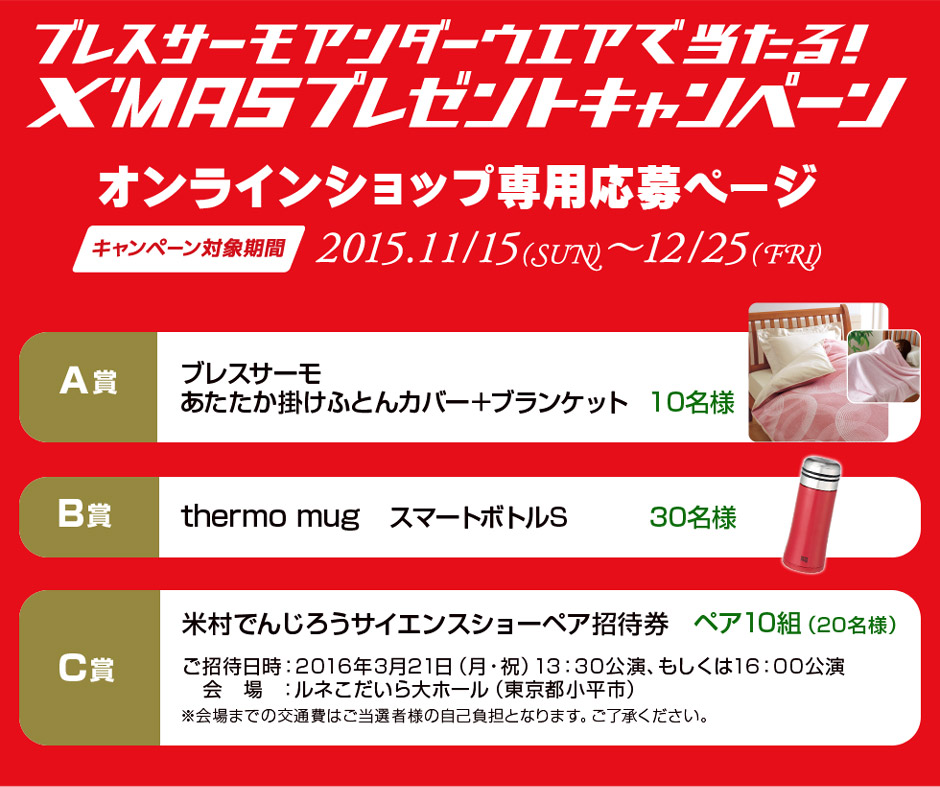 ブレスサーモアンダーウエアX'MASプレゼントキャンペーン