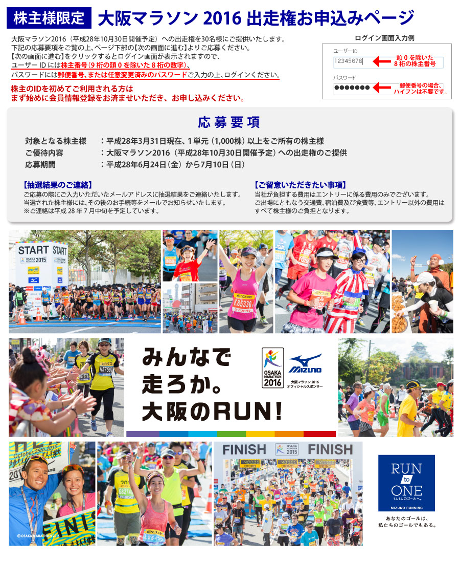 【株主様限定】大阪マラソン2016出走権お申込みページ