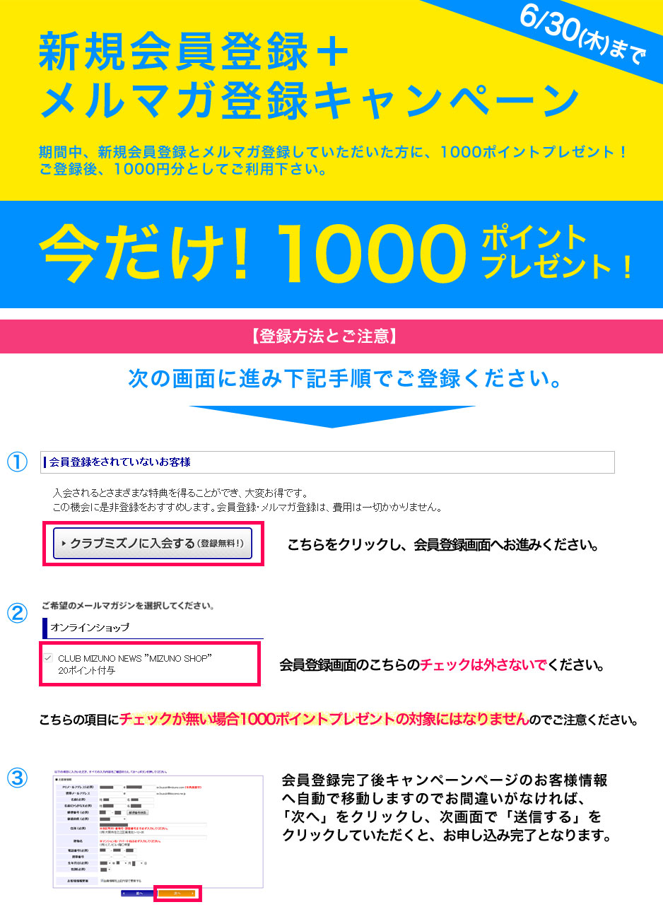 ミズノ公式オンラインショップ 新規会員登録+メルマガ登録キャンペーン