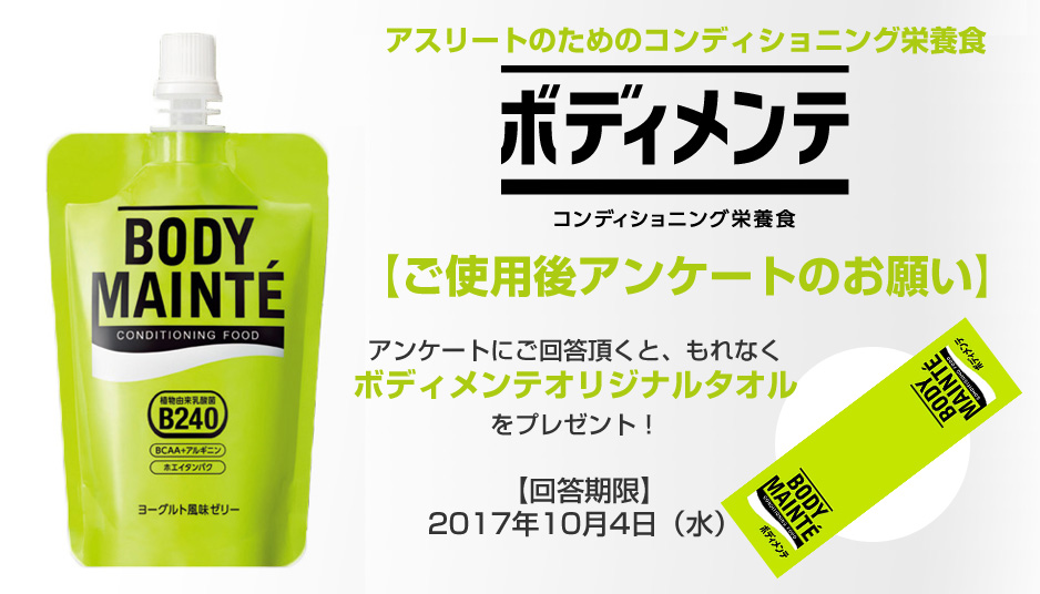 ご使用後アンケートにご回答頂いたお客様にもれなく、ボディメンテオリジナルタオルをプレゼントさせていただきます。