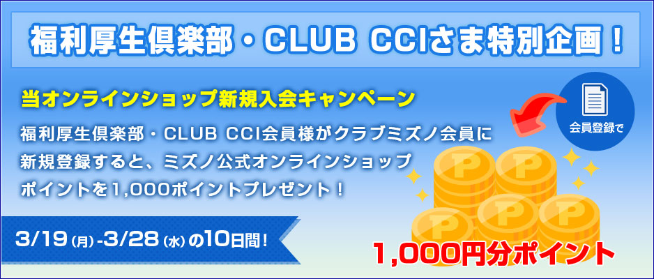 ぜひ、今回の福利厚生倶楽部・CLUB CCI会員様へのお得な特別企画で、クラブミズノ会員にご登録ください!