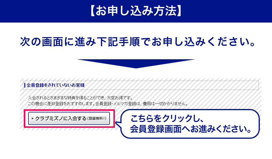 ・すでにクラブミズノ会員のIDを取得されている方は、今回のキャンペーンでは対象外とさせていただきます。