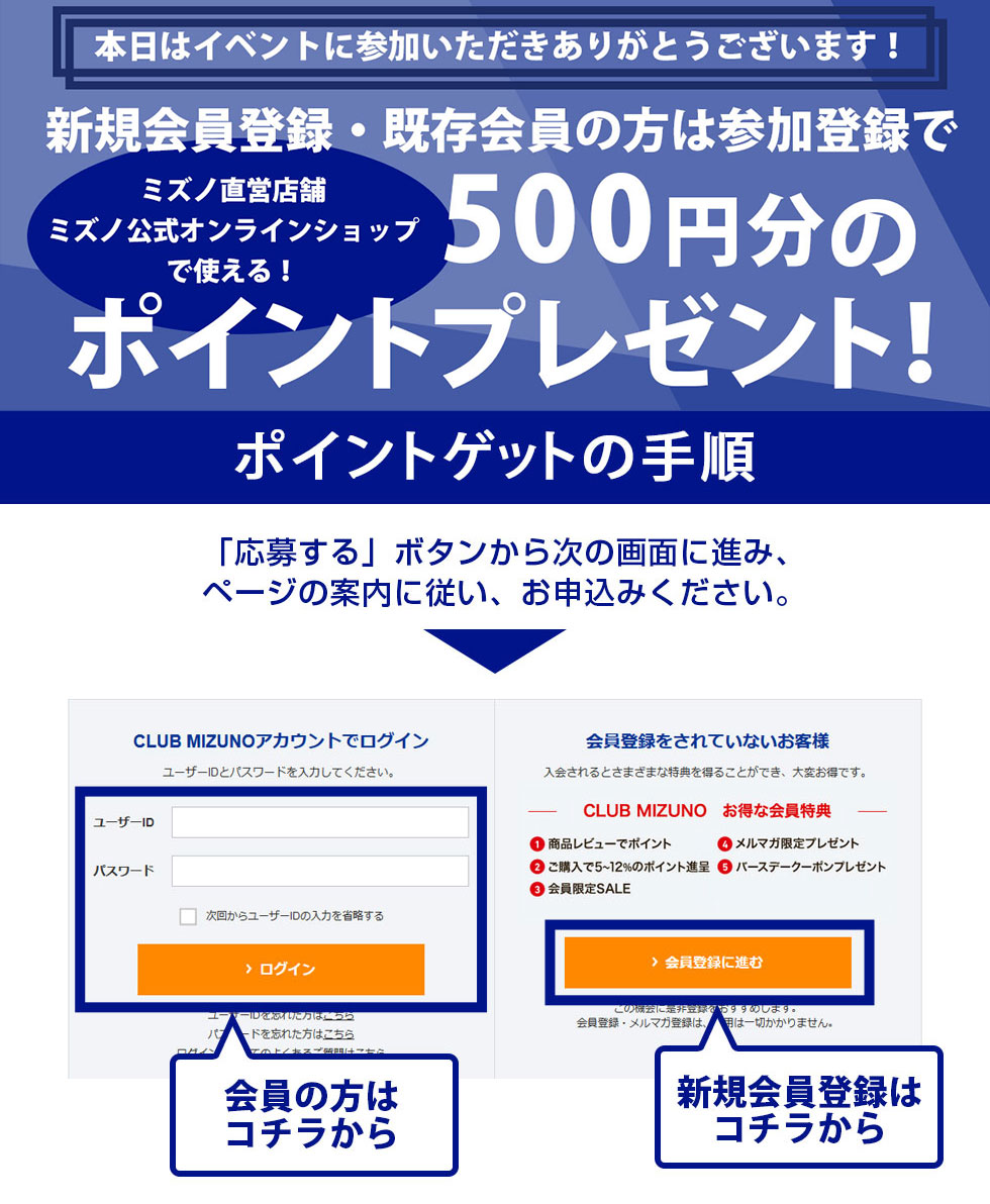 本日ご参加の皆様には、クラブミズノポイントを500ポイントプレゼントいたします。