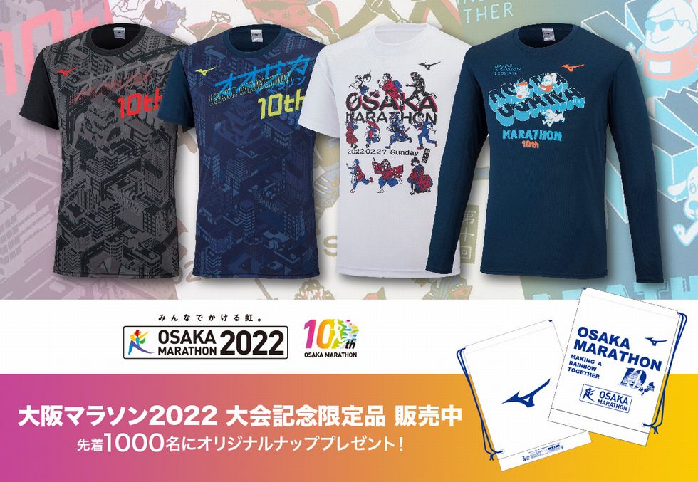1月21日よりミズノ公式オンラインショップにて〔大阪マラソン2022 大会記念限定品〕の販売を開始いたします。プレゼントする〔500PT〕をご利用いただけますので、ご登録後にお買い物をお楽しみください。