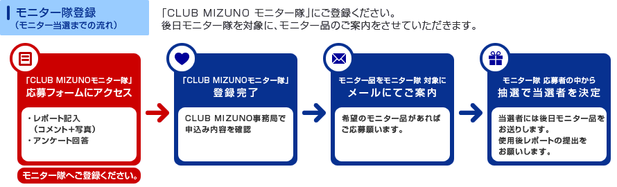 ・「CLUB MIZUNO モニター隊」の任期は2012年3月末までです。