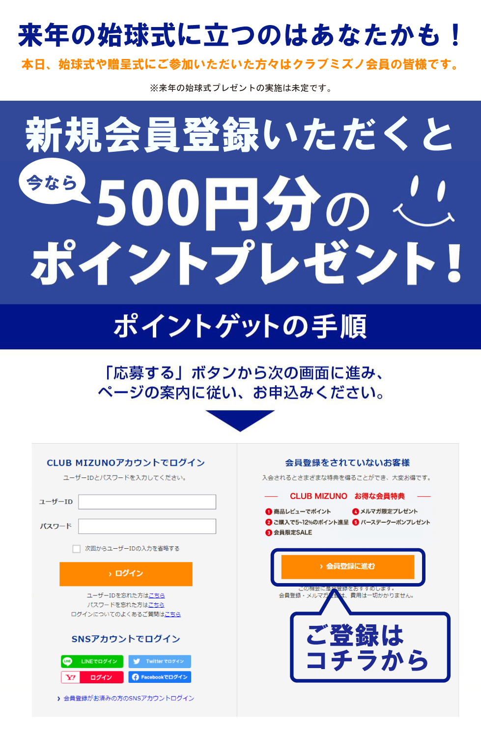 ・すでにCLUB MIZUNOに会員登録されている方は、対象外となりますのでご了承ください。