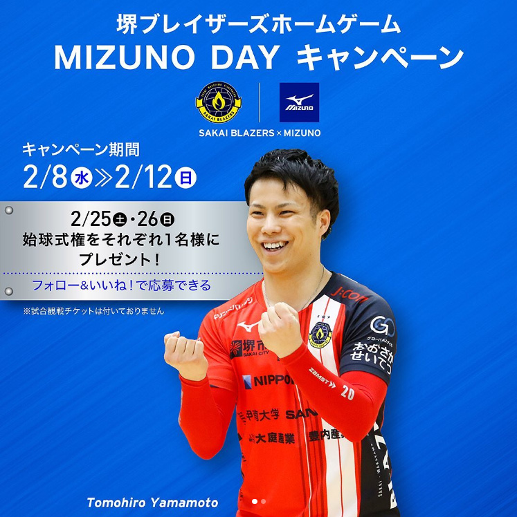 【バレーボール】堺ブレイザーズホームゲーム MIZUNO DAY キャンペーン 2/26(日)当選登録フォーム