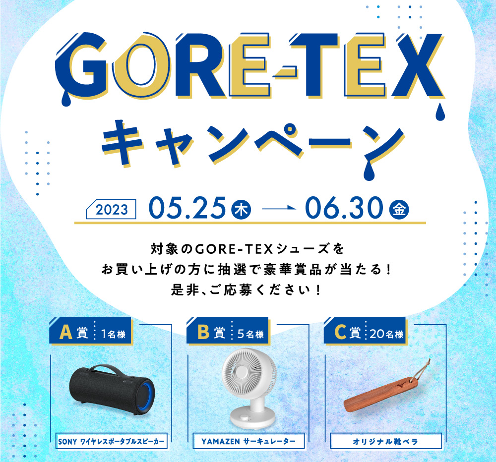 対象のGORE-TEXシューズをお買い上げの方に抽選で豪華賞品が当たる!是非、ご応募ください!