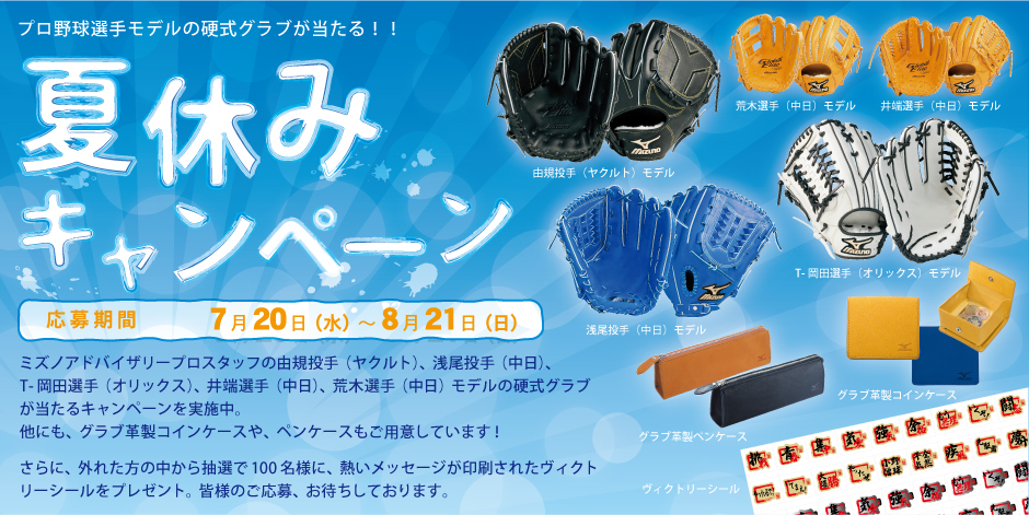 - 当選者の方は、クラブミズノ【野球・ソフトボール】のメルマガにてお住まいの都道府県とニックネームを公開させて頂く場合があります。