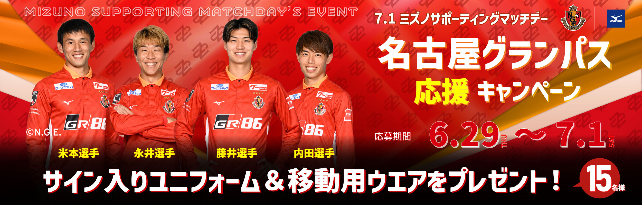 【フットボール】名古屋グランパス ミズノサポーティングマッチイベント 選手サイン入りグッズが当たる!応援キャンペーン