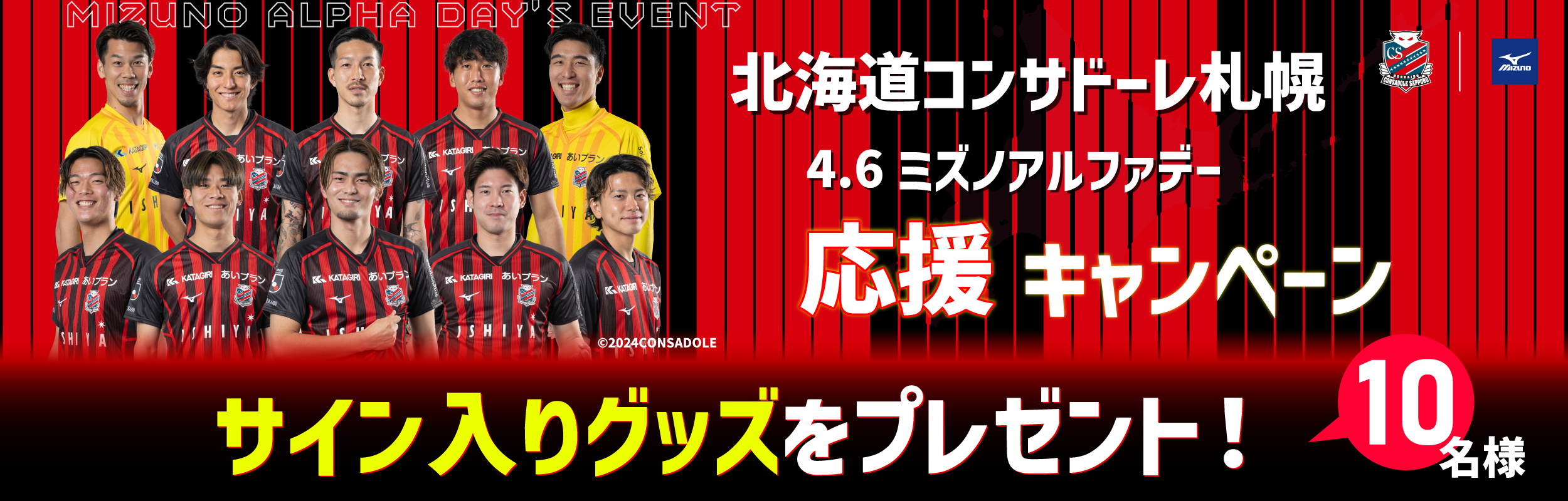 【フットボール】北海道コンサドーレ札幌 ミズノアルファデーイベント 選手サイン入りグッズが当たる!応援キャンペーン