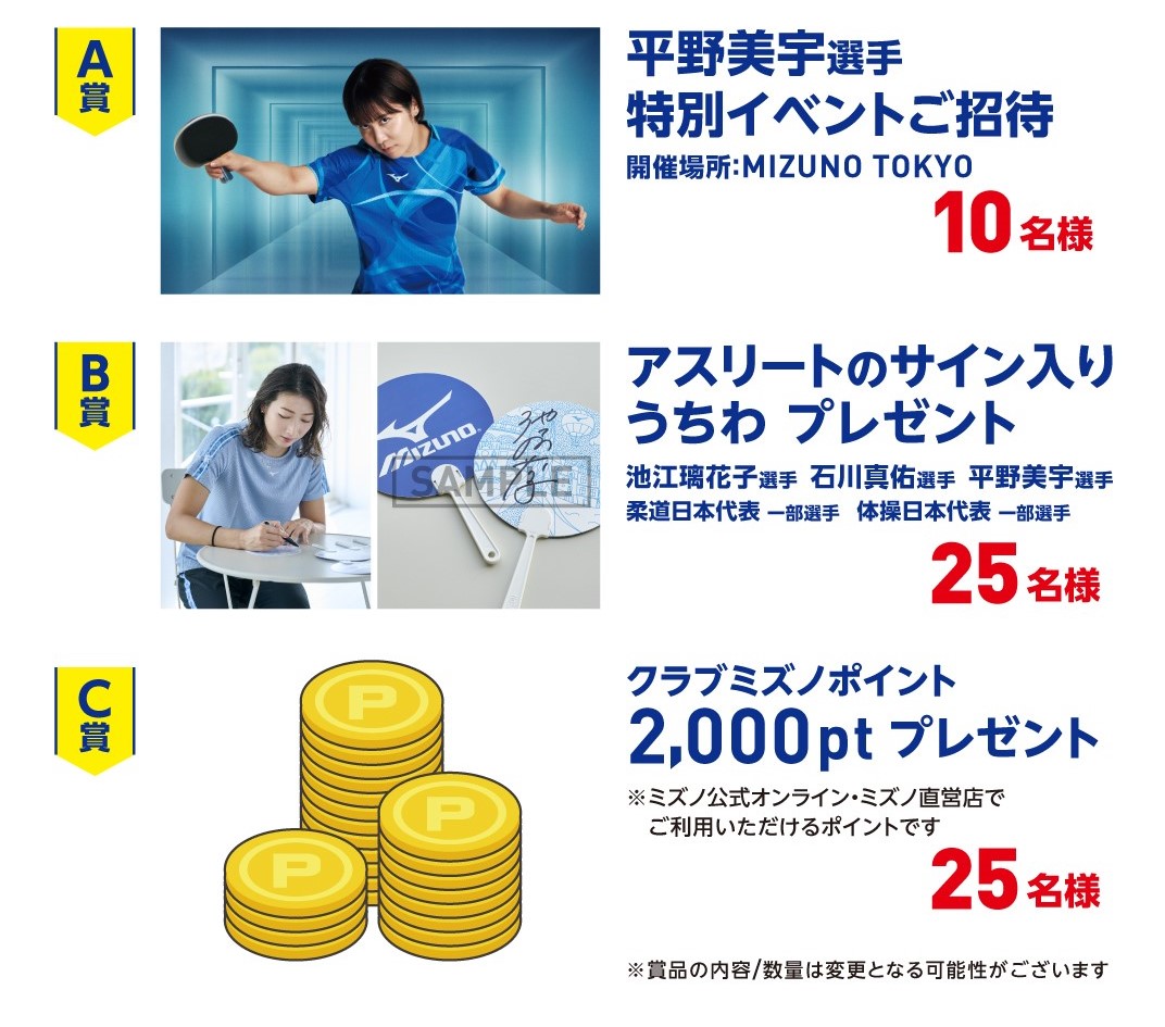 当選された方にはクラブミズノにご登録いただいているメールアドレス(※1)宛に2024年9月17日(火)にご連絡をいたします。