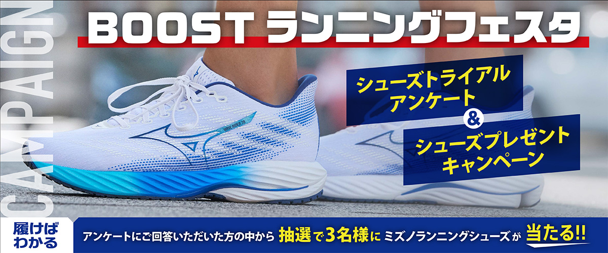 ミズノランニングシューズを3名様にプレゼントいたします。