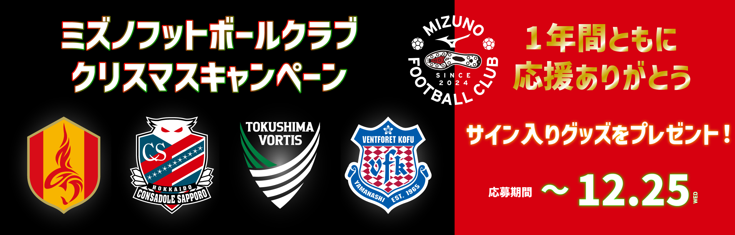 ・キャンペーンの応募にはCLUB MIZUNO会員登録+ミズノフットボールクラブ入部が必要です。(登録無料・要メールアドレス)