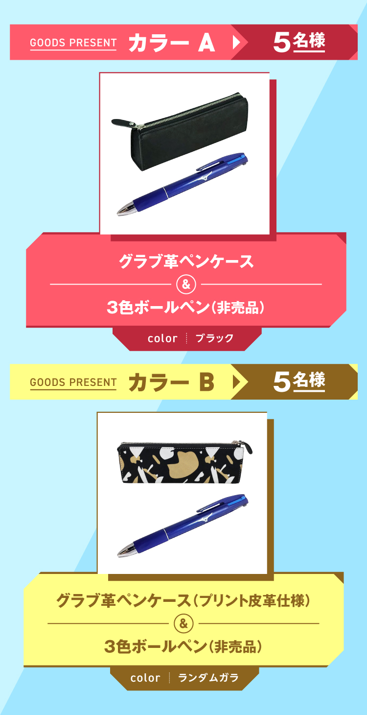 グラブ革を用いたミズノオリジナルのペンケースと、ミズノランバードマークの入った3色ボールペン(非売品)をプレゼント!