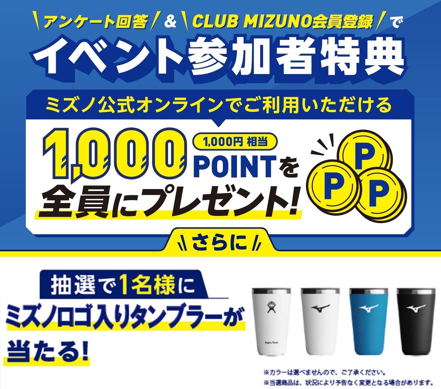 ・ポイントは、応募されたCLUB MIZUNO会員IDへ付与いたします。
