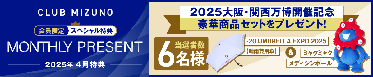 今月は、2025大阪・関西万博の開催を記念して、ミズノ公式ライセンス商品の豪華商品セットを抽選で6名様にプレゼント!
