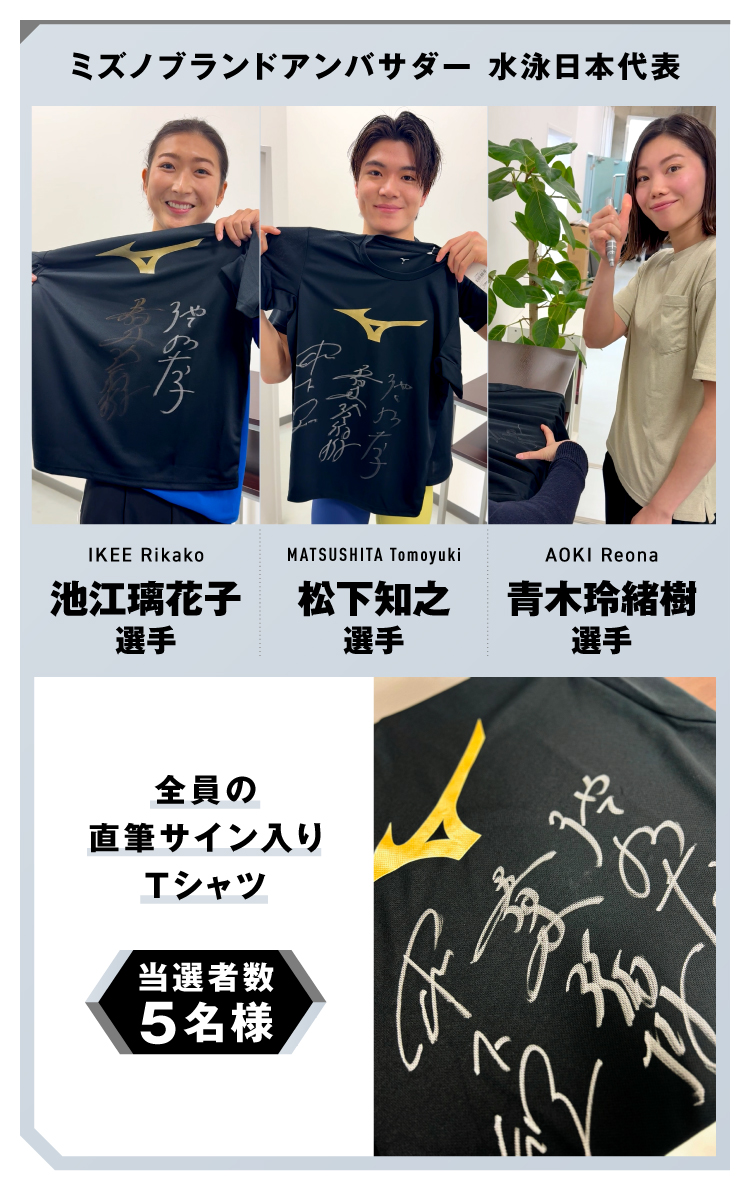 水泳日本代表3選手(池江璃花子選手・松下知之選手・青木玲緒樹選手)の直筆サイン入りTシャツをプレゼント!