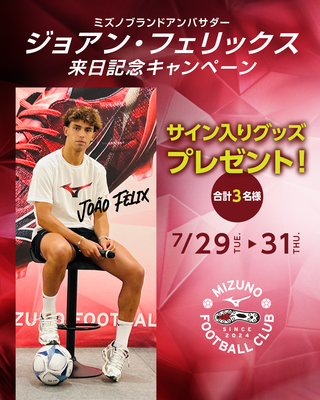 ・キャンペーンの応募にはCLUB MIZUNO会員登録+ミズノフットボールクラブ入部が必要です。(登録無料・要メールアドレス)