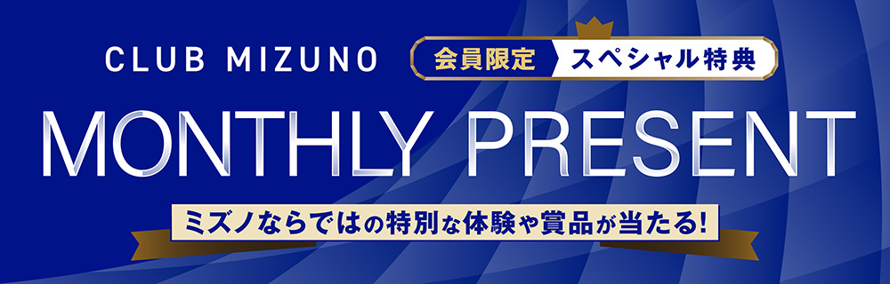 マンスリープレゼントは、契約アスリートのサイン入り商品やスペシャルイベントへのご招待などクラブミズノならではの特別な抽選に毎月応募できる会員様限定特典です。毎月のプレゼント内容は専用サイトやメールマガジンで発信しています。ぜひ、毎月チェックをしていただき、ご応募ください。