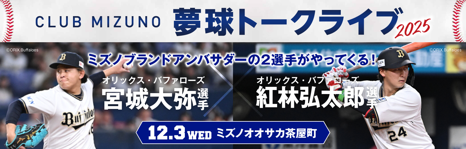 ミズノブランドアンバサダー・オリックス・バファローズの宮城 大弥選手×紅林 弘太郎選手がミズノオオサカ茶屋町にやってくる!