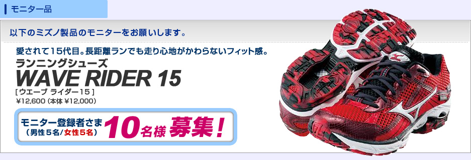 【CLUB MIZUNO モニター隊】ウエーブライダー15:モニター申し込みフォーム
