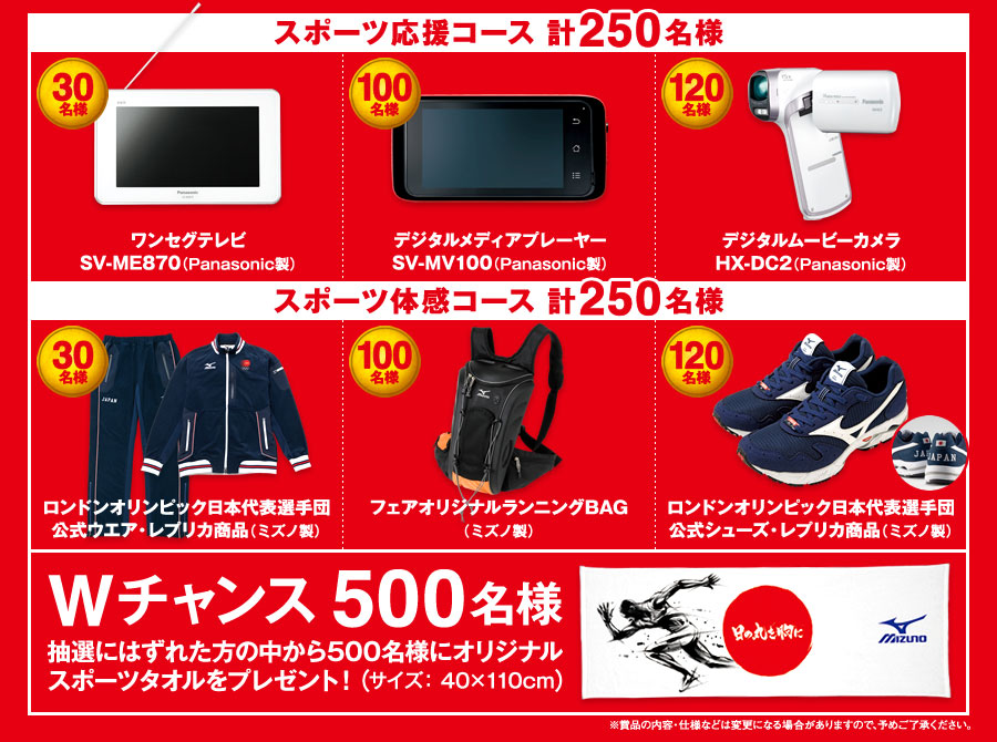 応じかねますので、予めご了承ください。 - 当キャンペーンのご当選者は、同時期に実施される他のミズノ主催のキャンペーンと重複して当選できません。