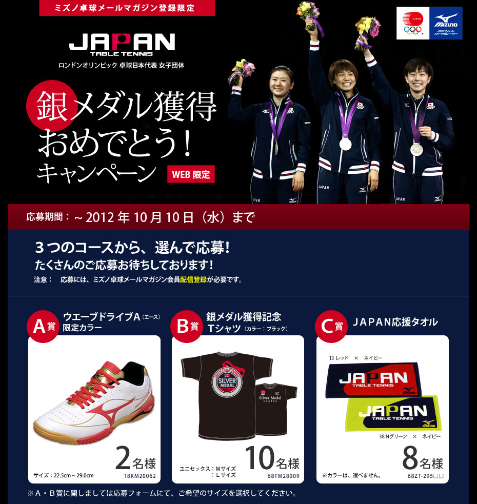 【卓球】メルマガ登録/(WEB限定)銀メダル獲得おめでとう!キャンペーン