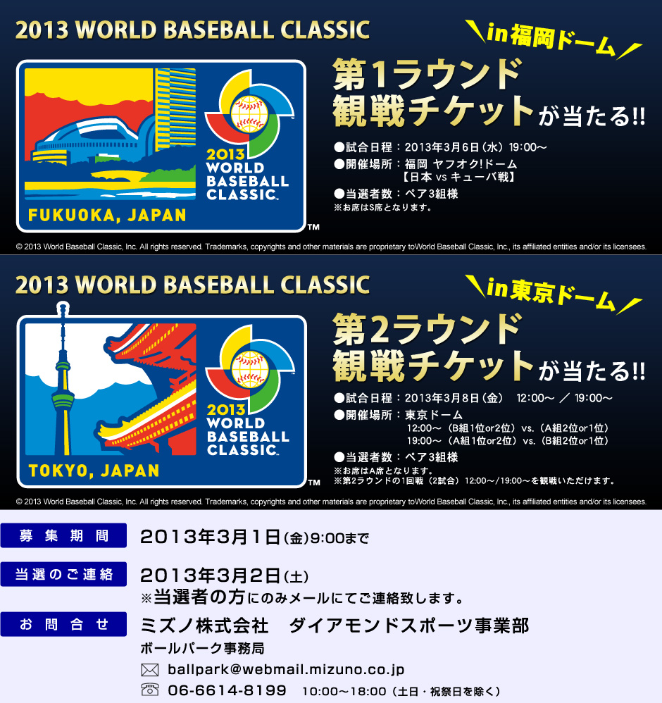 2013 WORLD BASEBALL CLASSIC 観戦チケットプレゼント