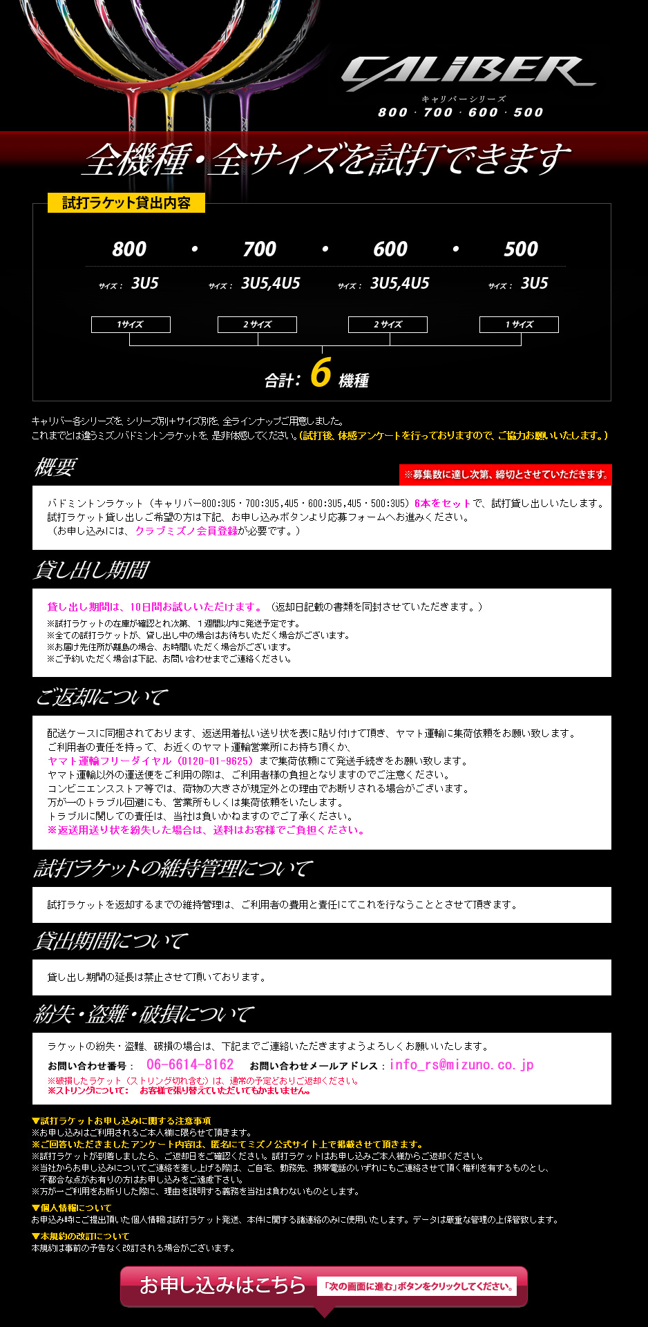 【バドミントン】第4次キャリバーシリーズ試打ラケット受付:応募フォーム