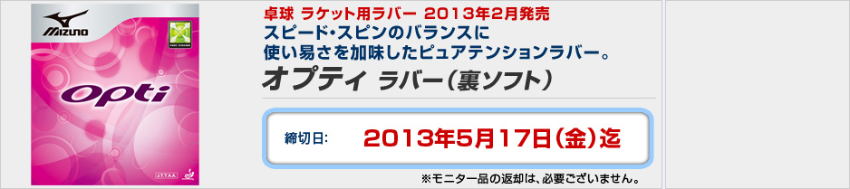 【CLUB MIZUNO 体感モニター】オプティ ラバー(卓球ラバー) :モニターアンケート