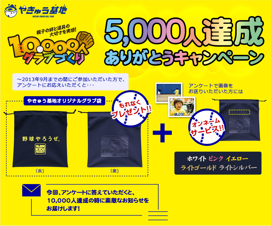 【やきゅう基地】10,000人グラブづくり5,000人達成ありがとうキャンペーン