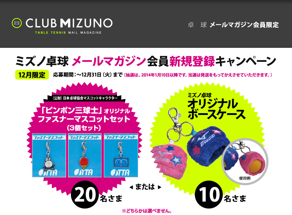 ミズノ卓球メールマガジン購読のチェックをしていただいた方のみ抽選の対象とさせていただきます。
