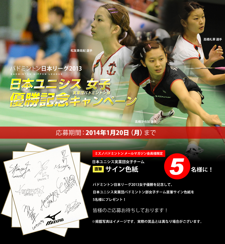 【バドミントン】メールマガジン会員 日本リーグ2013:日本ユニシス女子優勝キャンペーン