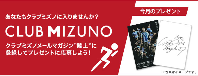 ※このプレゼントに関する個人情報取扱いのお問い合わせはミズノ株式会社コンペティション事業部 までメール(mizunotrackclub@webmail.mizuno.co.jp)にてお願い致します。