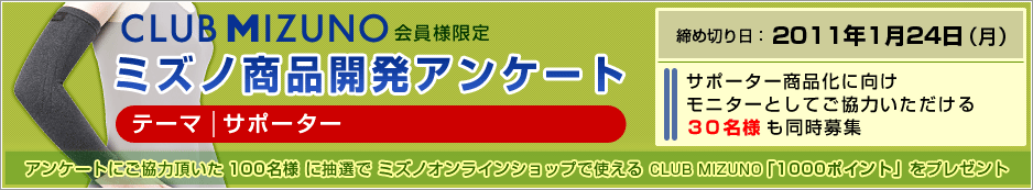 なお、アンケートにご協力頂いた中から抽選で100名様に、ミズノオンラインショップで使えるCLUB MIZUNO「1000ポイント」をプレゼント致します。