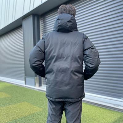 | 素材 | 表地:ポリエステル100%(裏面:ポリウレタンフィルムラミネート) 袖口:ポリエステル92%、ポリウレタン8% 裏地:ポリエステル100% 中綿:ダウン90%、フェザー10% 後身頃上部芯地:合成繊維(ブレスサーモ)65%、ナイロン35% |