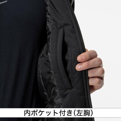 | 素材 | 表地、身頃:ポリエステル100% 袖:ポリエステル100%(表面ポリウレタンラミネート) 裏地:ポリエステル100% 中綿、身頃:ポリエステル83%、合成繊維(ブレスサーモ)17% 袖:ポリエステル100% フライス:ポリエステル100% |
