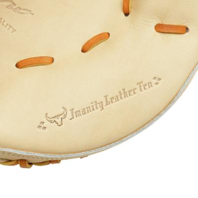薬指部分のエンボス加工で薬指が革に食いつき、ズレにくい。薬指は捕球の際に力が入る重要な部分。