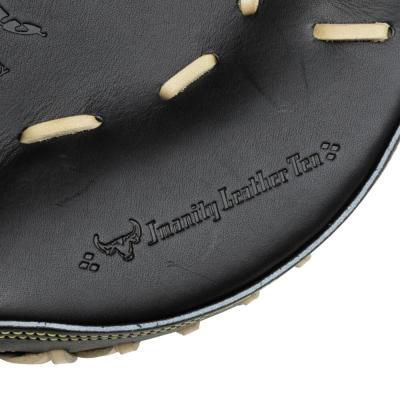 新品のグラブは非常に固いため、使用前に型付けが必要ですが、手もみ加工を施すことで柔らかくし、使用しやすい状態に近付きます。