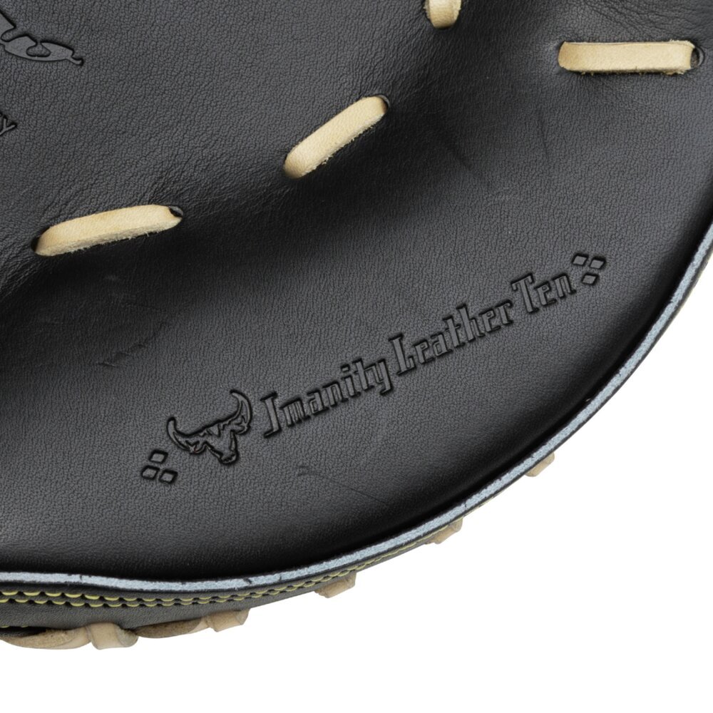 薬指部分のエンボス加工で薬指が革に食いつき、ズレにくい。薬指は捕球の際に力が入る重要な部分。