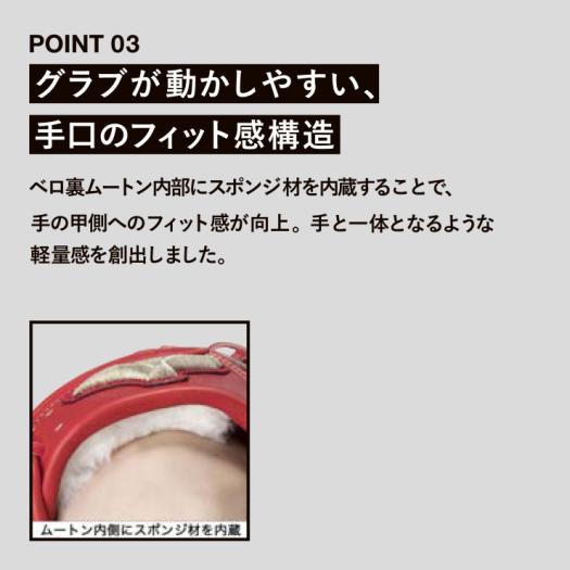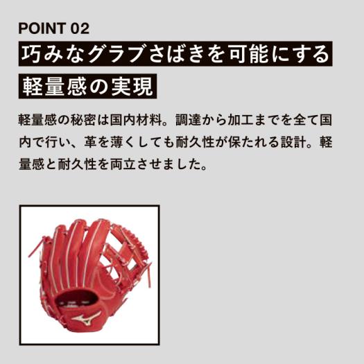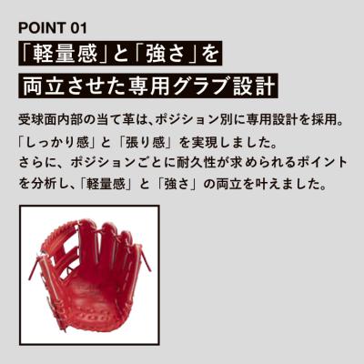 キャッチコピー トッププロ基本型×軽量・操作性を兼ね備えたモデル! トッププロ基本型×軽量・操作性を兼ね備えたモデル! トッププロ基本型×軽量・操作性を兼ね備えたモデル! 圧倒的な軽量感を!! 手にはめた瞬間に「扱いやすい」「軽い」と感じる王道グラブが理想のプレーをサポート!! 初めての硬式プレーヤーへ!