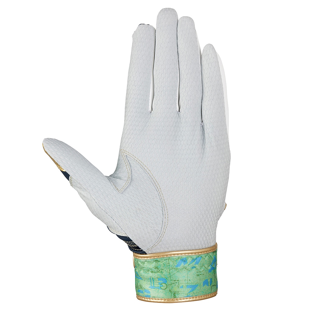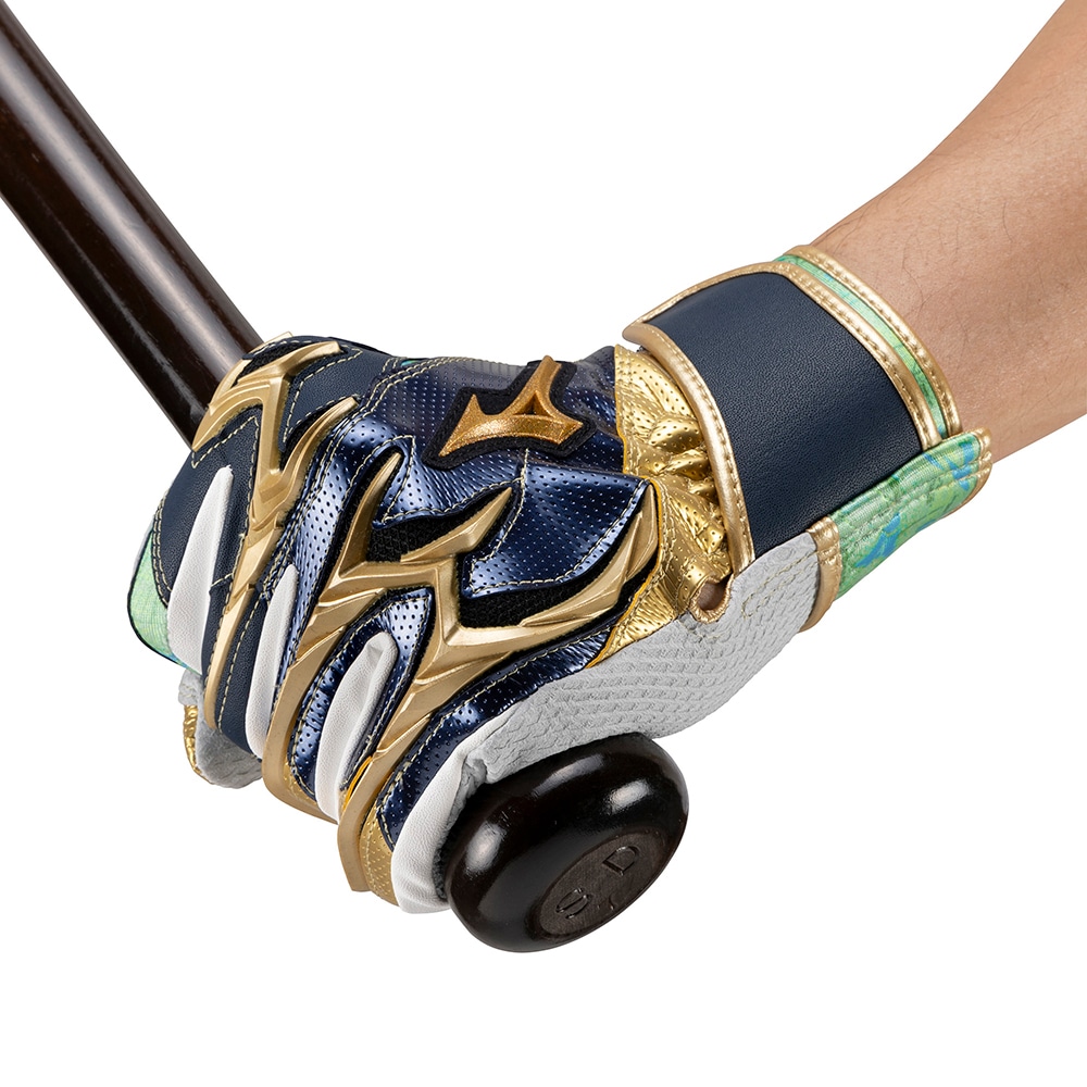 | 特徴 | パワーアークラインが握り返す力を生み出す。スイング時のパワーロスを最小限に抑えるデュアルテンション構造。掌部にはダイヤエンボスシープレザーを採用。 | 握り込む際の変形挙動に合わせた手甲のカッティングを再現。伸縮素材がグリップ時のストレスを緩和し、掌部にはソフト&ライトシープレザーを採用することで限りなく素手感覚へ。 | 小指・薬指・中指と当て革部に採用された特殊合成皮革が高いグリップ力・密着性・耐久性を実現。全力のスイングを強力にサポート。 | 甲側の伸縮素材が素手感覚の装着性を実現。柔らかな装着性のウレタンベルトが的確なミートへの動きをサポート。 | ミズノUSAモデル。耐久性とハリのあるフィーリングを併せ持つ天然皮革であるやぎ革を掌部に採用。 | 優れた伸縮性を持つマルチストレッチ素材「ゼロスペ合皮」を甲側に採用し、手と手袋の一体感を可能な限り高める設計で、高いフィット感を実現。 |