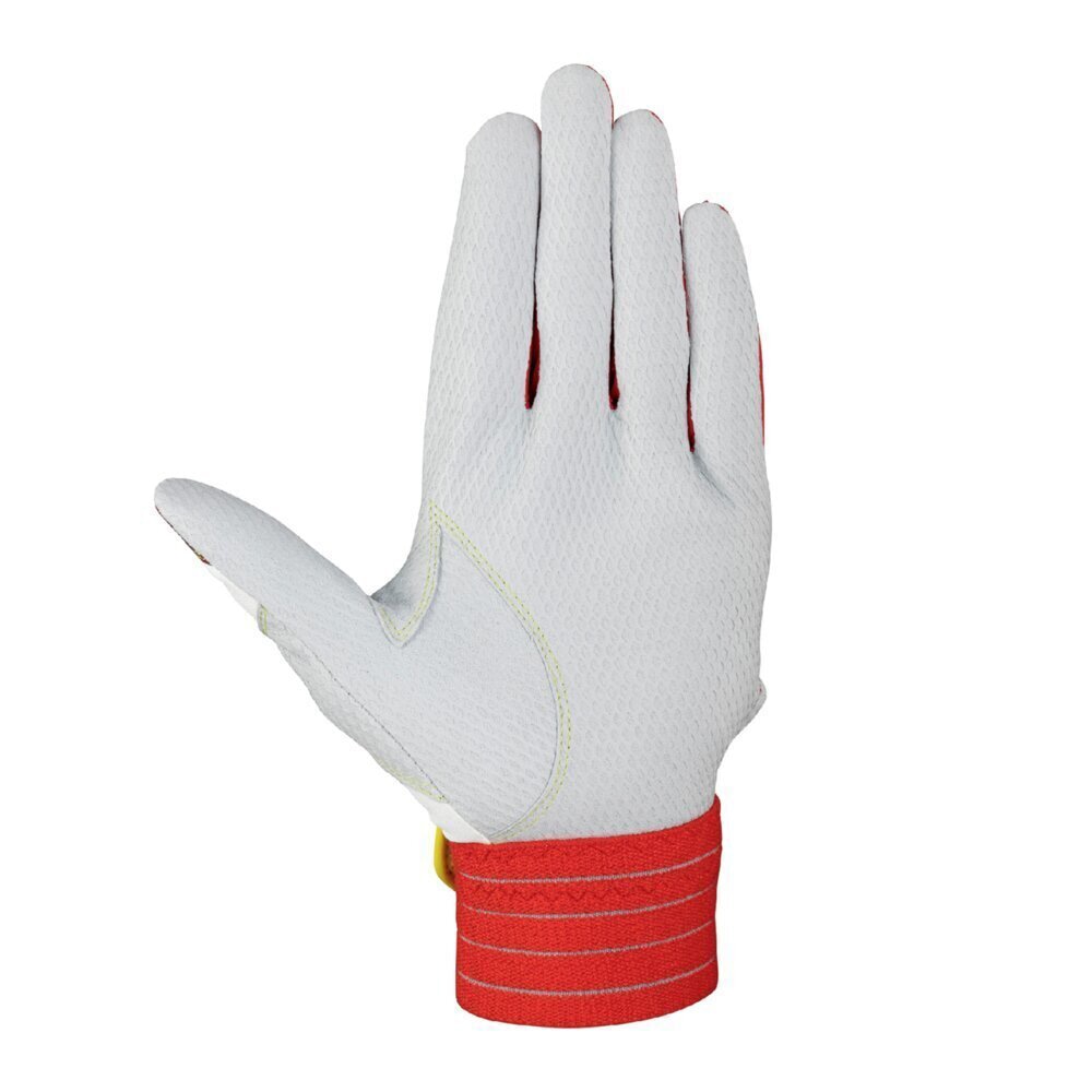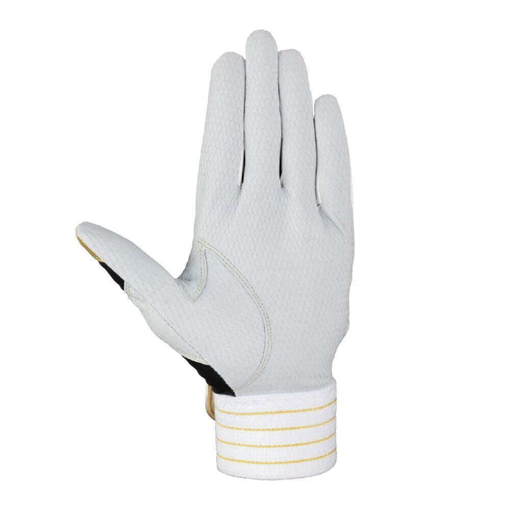 | 特徴 | パワーアークラインが握り返す力を生み出す。スイング時のパワーロスを最小限に抑えるデュアルテンション構造。掌部にはダイヤエンボスシープレザーを採用。 | 握り込む際の変形挙動に合わせた手甲のカッティングを再現。伸縮素材がグリップ時のストレスを緩和し、掌部にはソフト&ライトシープレザーを採用することで限りなく素手感覚へ。 | 小指・薬指・中指と当て革部に採用された特殊合成皮革が高いグリップ力・密着性・耐久性を実現。全力のスイングを強力にサポート。 | 甲側の伸縮素材が素手感覚の装着性を実現。柔らかな装着性のウレタンベルトが的確なミートへの動きをサポート。 | ミズノUSAモデル。耐久性とハリのあるフィーリングを併せ持つ天然皮革であるやぎ革を掌部に採用。 | 優れた伸縮性を持つマルチストレッチ素材「ゼロスペ合皮」を甲側に採用し、手と手袋の一体感を可能な限り高める設計で、高いフィット感を実現。 |