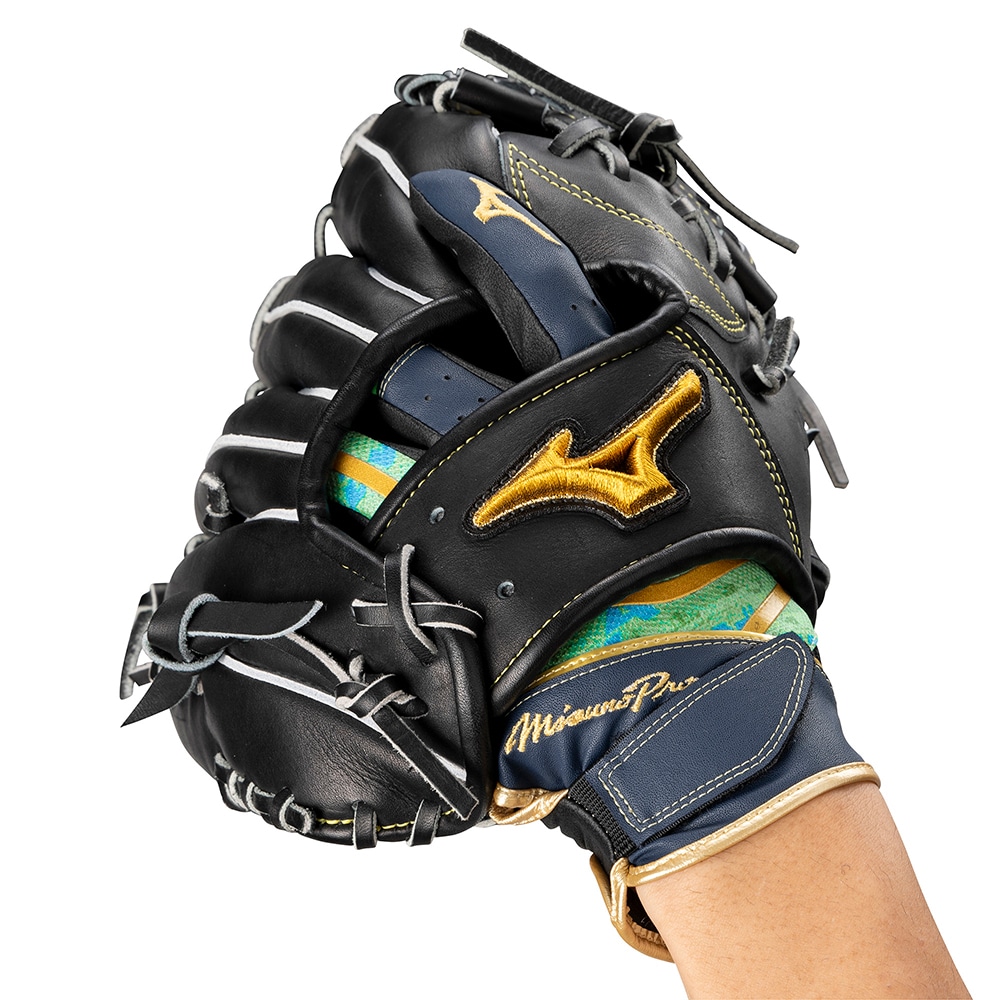 グラブの自在な操作をサポートする為の手首部ショート設計。自然な手の動きに近くなることで、球際のグラブさばきを素早く、かつスムーズなものにします。